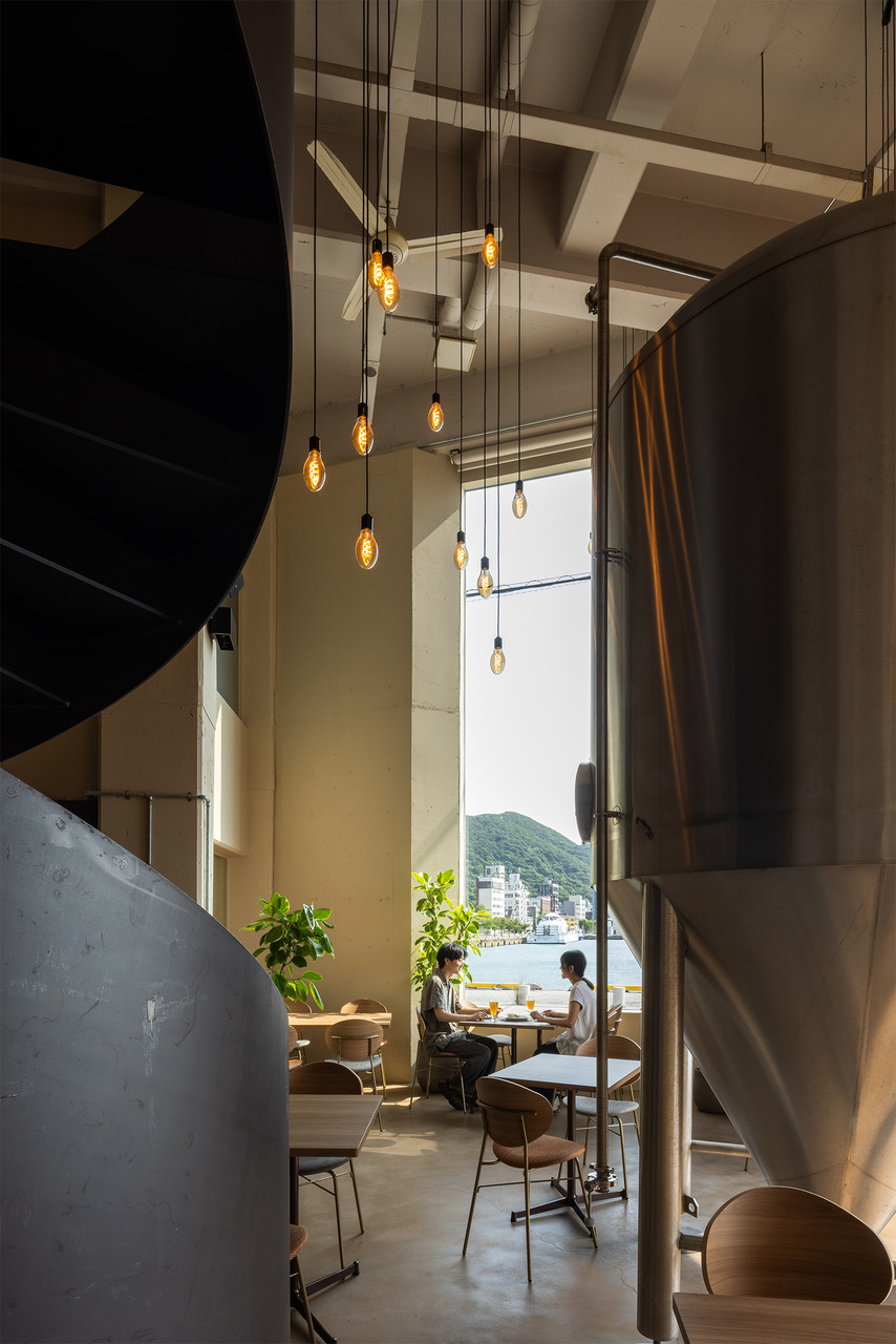 This project is a company-owned restaurant where freshly brewed beer from MOJIKO BEER, a local craft brewery rooted in Mojiko, can be enjoyed directly from the factory. The site is an existing building of approximately 50 years old located in a corner of the Mojiko port area. The renovation was guided by the theme of maximizing both the potential of the existing structure and the unique character of the port-town setting. On the first floor, a new large opening measuring 2 meters in width and 6 meters in height was introduced into the double-height space, creating a façade that opens generously to the street. The seating area is designed as an open and casual space where even first-time visitors can feel comfortable stopping by. In contrast, the third floor offers a shift in atmosphere: a calm and refined dining space where guests can relax with a beer in hand and enjoy a course meal while overlooking the Kanmon Straits. Rather than expressing more than necessary through architecture, the project aims to create a place that feels distinctly Mojiko by making the most of the qualities already present on the site.